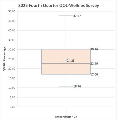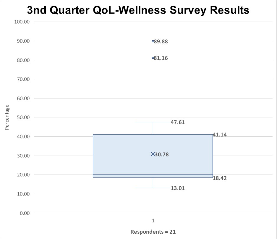 There are 36 Quality of Live questions in this survey (27 Satisfaction and 9 Bothered).